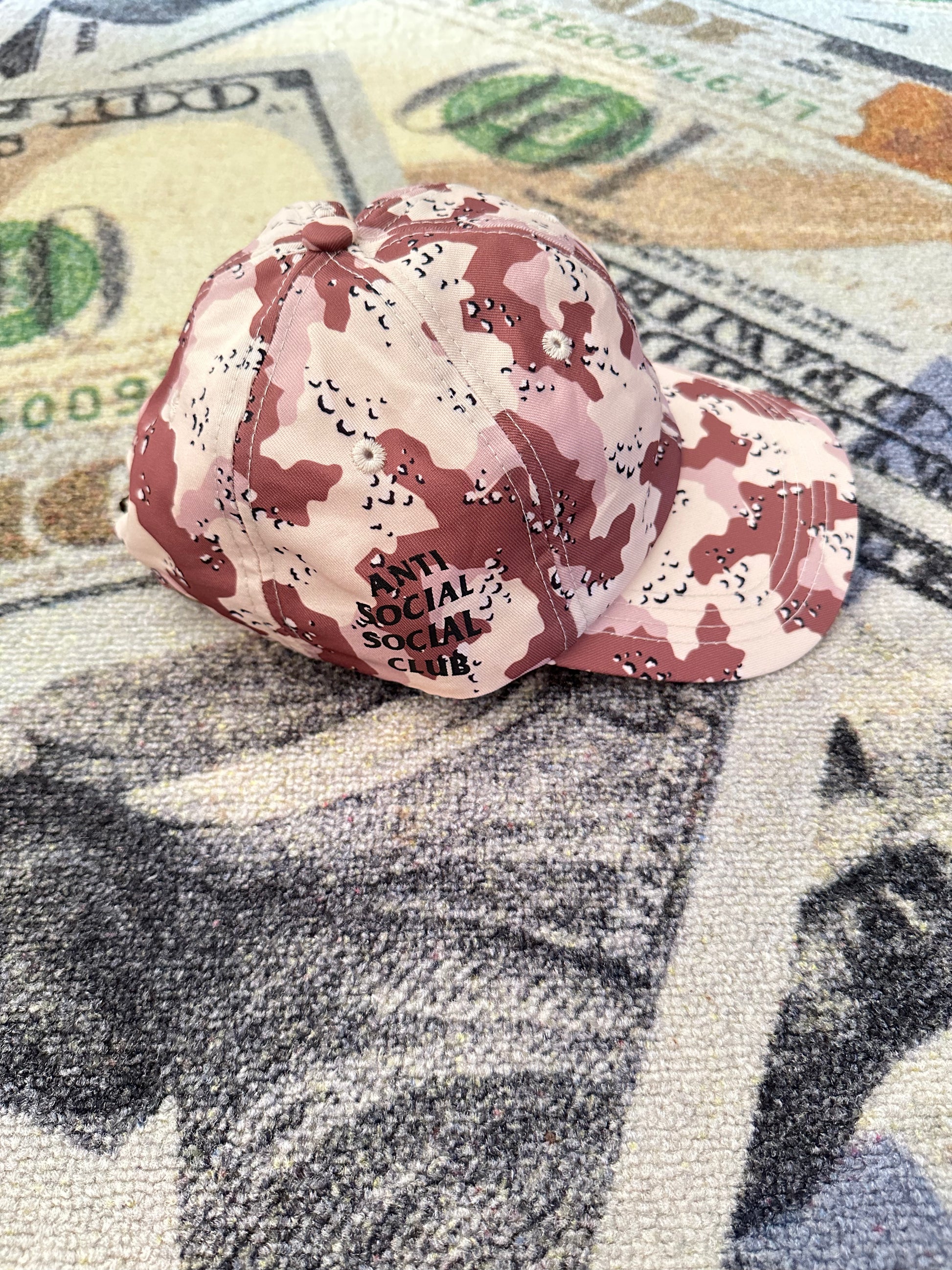 Gorra 6-Panel Dad Hat Anti Social Social Club, con diseño camo y estilo urbano casual, perfecta para complementar looks streetwear.