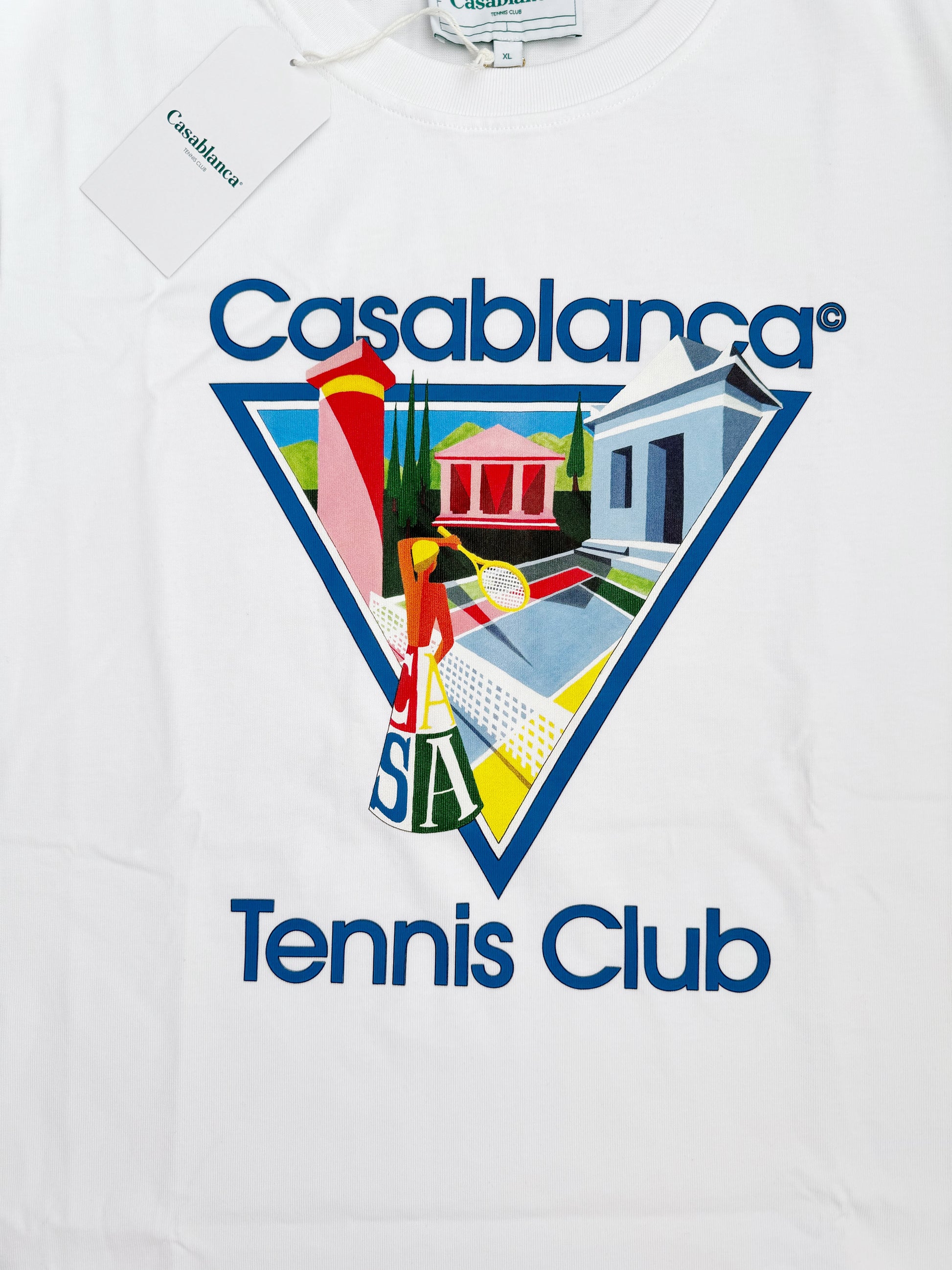 Camiseta Casablanca en color blanco con gráfico frontal Tennis Club, ideal para un look streetwear con estética deportiva y elegante.