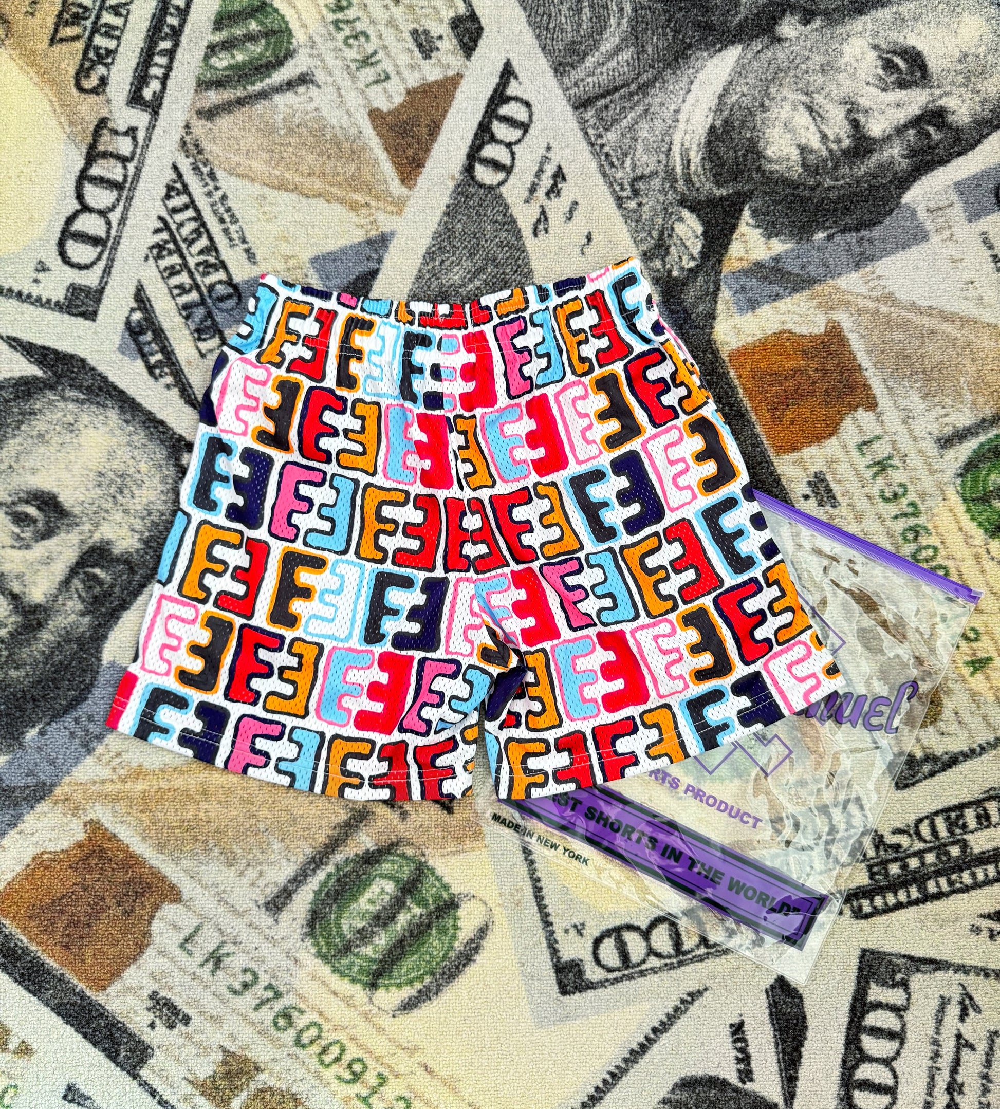 Pantaloneta Eric Emanuel EE Basic Shorts con diseño hand-painted (pintado a mano) por Jake Clark, combinando estilo artístico con estética urbana y deportiva.