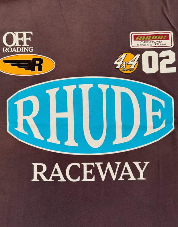 Camiseta RHUDE en color gris con logo print frontal, confeccionada en algodón suave con corte clásico y manga corta. Una pieza minimalista y elegante dentro del estilo urbano contemporáneo.