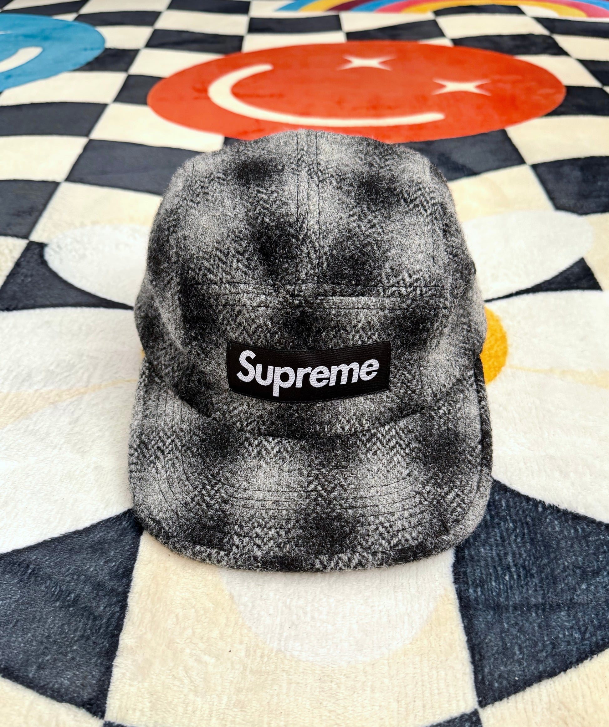 Gorra Supreme camp cap en negro confeccionada con tejido Harris Tweed, un material clásico de alta calidad con textura tejida tradicional que aporta carácter y sofisticación urbana. Esta pieza combina estilo streetwear con detalles premium, perfecta para completar outfits con un toque elegante y distintivo.
