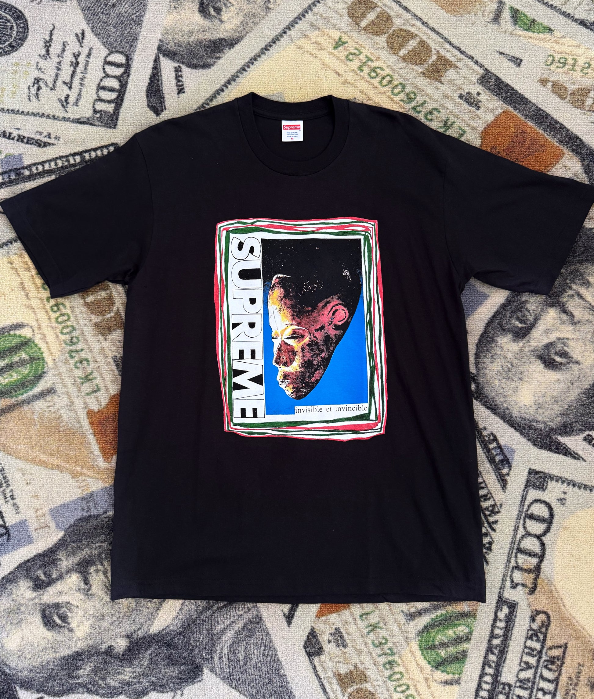Camiseta Mask Tee Supreme con gráfico de máscara estampado al frente, ideal para un look urbano y streetwear con diseño icónico.