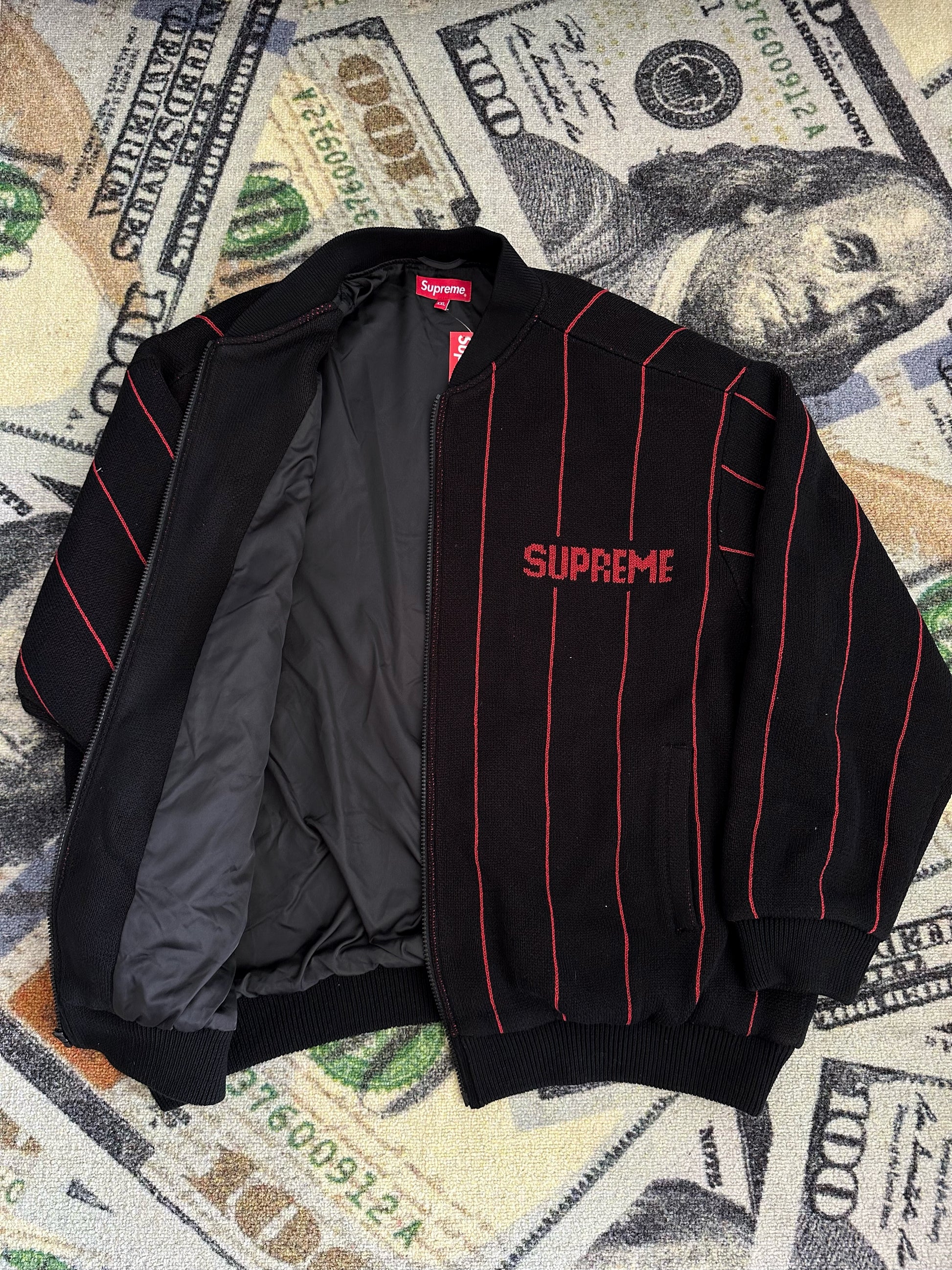 Supreme Pinstripe Varsity Zip-Up Sweater